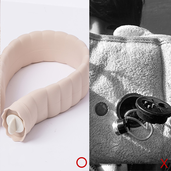 従来の湯たんぽなどとは異なり、マフラーのように首にかけられます。首を快適な温度に保ちながら、別の作業をすることができます。