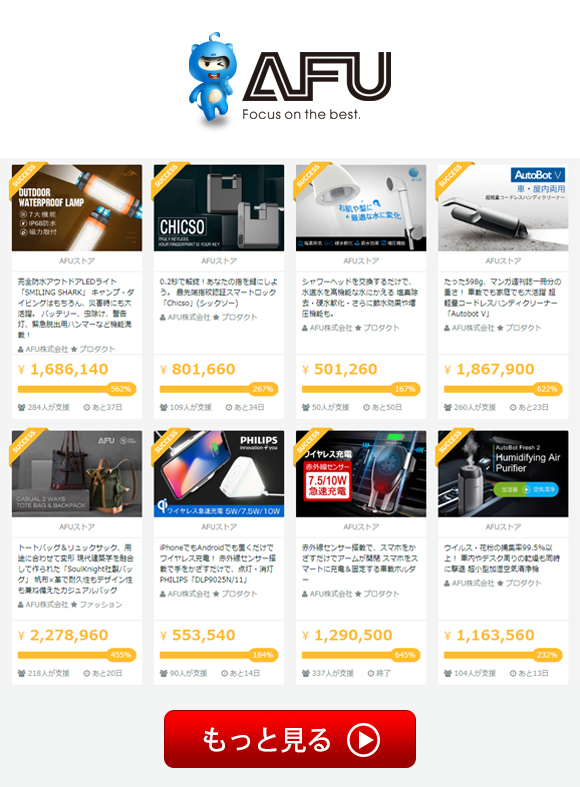 ここをクリックして、AFUストアのほかのプロジェクトもチェックできます♪