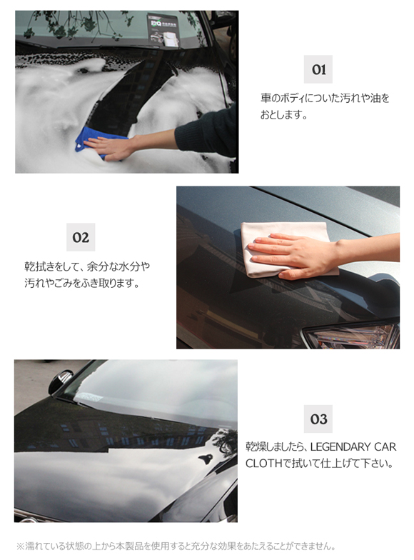 ※本製品を使用する前に必ず事前に洗車を実施してください。