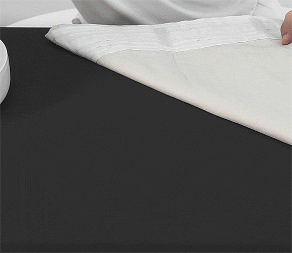 テーブルに小麦粉を撒いてふとんに溜まるダニやハウスダストを再現し、3枚の布を重ね合わせたからその上にCM1900を拭いておきます。その結果、小麦粉がしっかり取れました!!