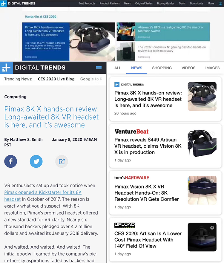 ぜひ皆様に報告すべき大朗報が入ります。ご存じのように、世界の電子製品の盛会であるCES 2020は今、アメリカのラス辺カスで開催されています。そんな中、当該製品がその盛会の最高奨であるDigital Trends Top Tech Award of CES 2020 AR/VRに入賞しました。