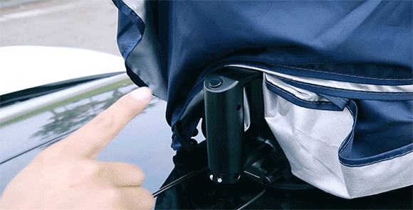 CAR UMBRELLAを車に取り付けて、ワイヤレスリモコンをワンクリック!すると自動でテントが開きます。