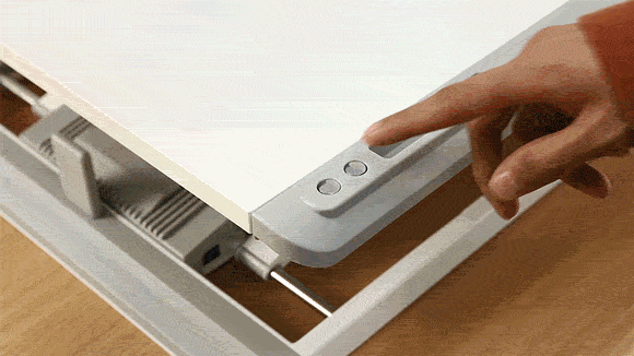 ワンボタンでデスクの高さを80㎜~400㎜の間で自由に調整。