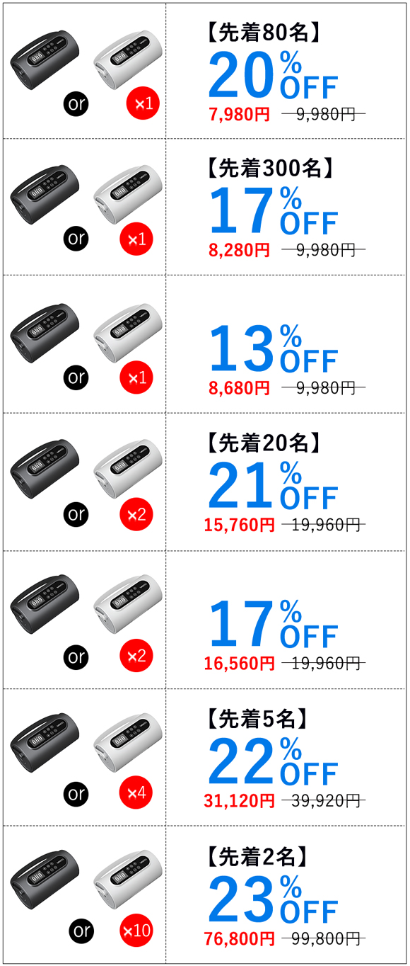 ※製品寿命に影響を与えない為、約10分間連続で使用した場合、約10分間ほどの冷却時間を設けることをお勧めします。