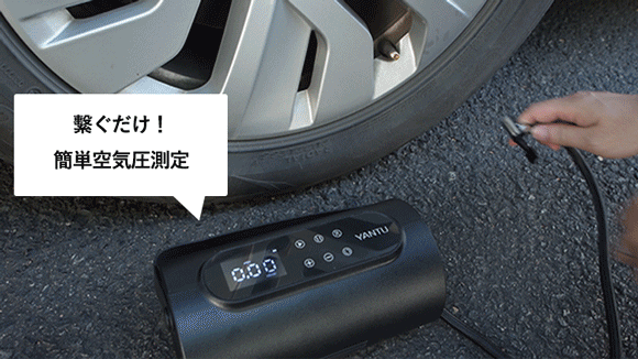 付属の空気チューブを繋げるだけで、簡単に現在のタイヤ空気圧を測定することができます。