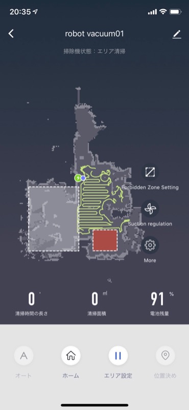 ↑赤いゾーンは禁止区域、白いゾーンは掃除指定区域。用途に合わせて設定できます。