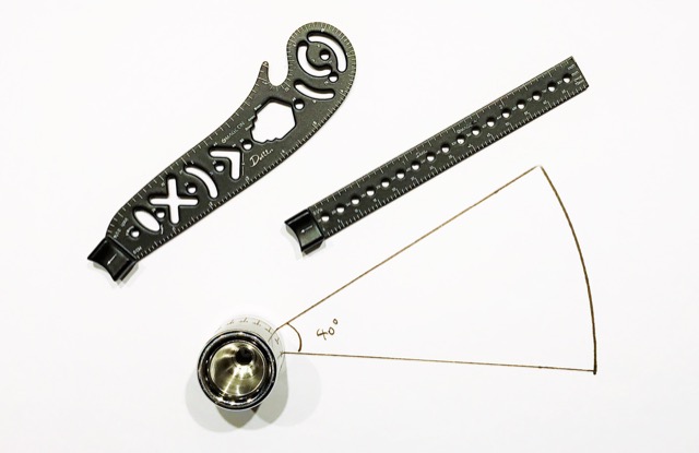 回転ベースと直線ルーラーの組み合わせは、分度器としても高い精度のアングルを描けます。