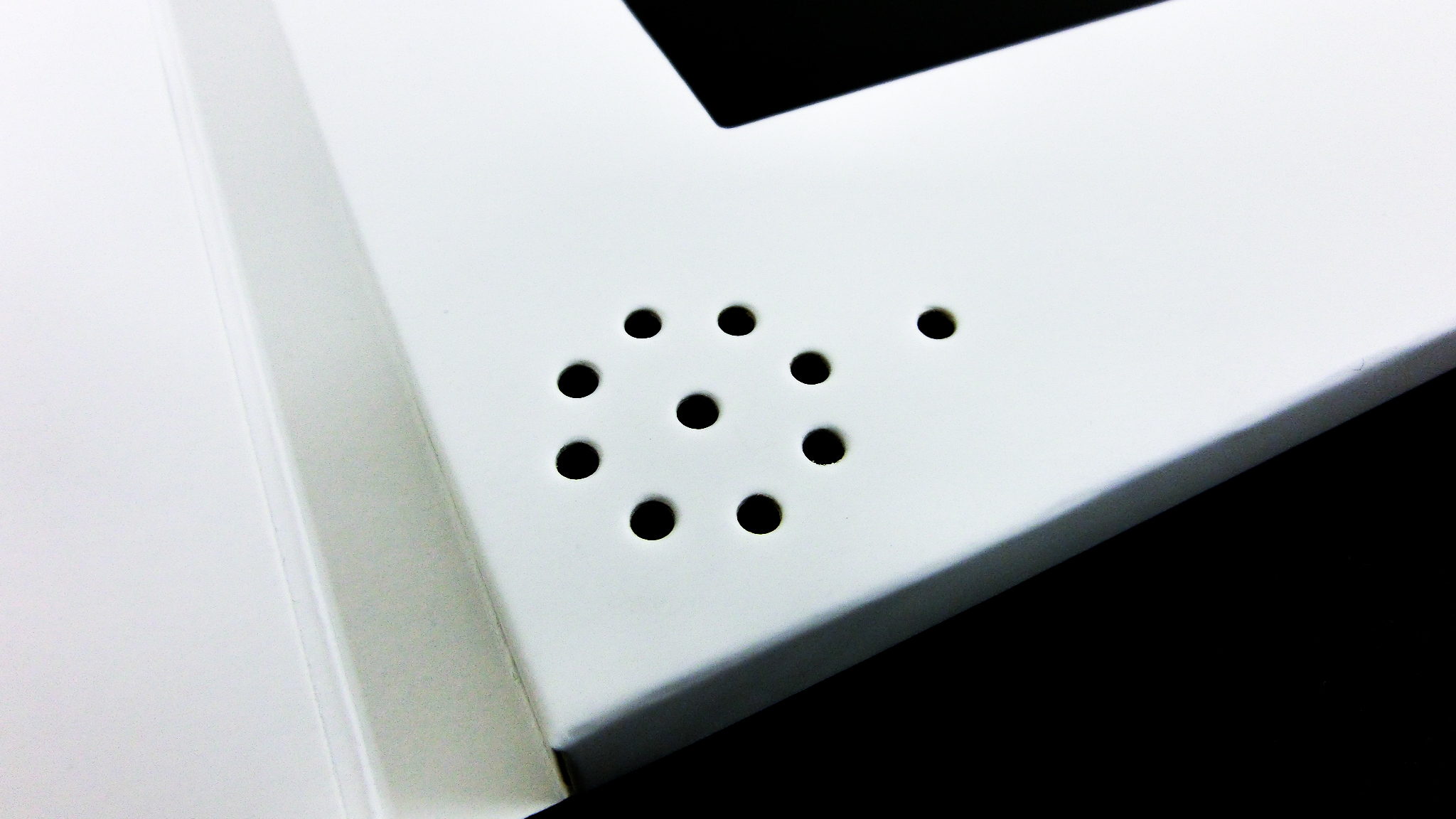 音が出るスピーカーは左下にあり、右隣にはマイクを内蔵しています。音声をリアルに録音し、リアルに流せます。