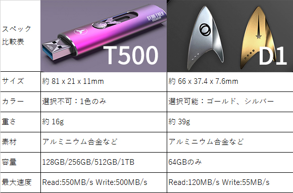 宇宙を航行する超光速のディスカバリー号からヒントを得てされて開発された、スタートレック仕様 USBメモリ「T500」&「D1」登場!!