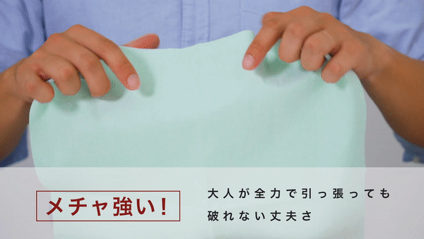 6. 大人が全力でひっぱっても、破れないほつれない、驚異の引張強さ。
