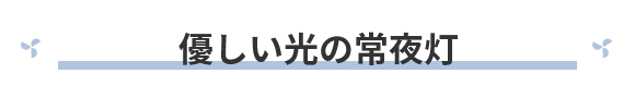 常夜灯の明るさは2段階に調節可能。優しい光ですので、ベッドサイドに置いても気になりません。