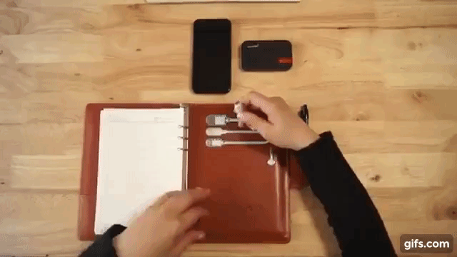メモしたノートの順番を入れ替えることはもちろん、工夫次第で、もっと小物を収納して便利に活用することが可能となります。
