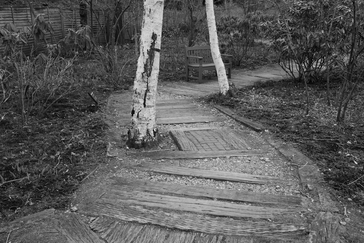 ボトムガーデンの遠路は、開園より31年経って、枕木が腐り、凸凹で、とても車椅子や乳母車がスムースに走れる環境ではなくなっています。